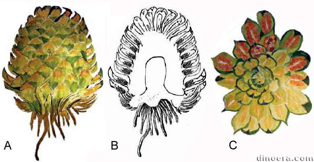Tomiostrobus migayi. Спорофилл Tomiostrobus migayi. Фрагмент стробила