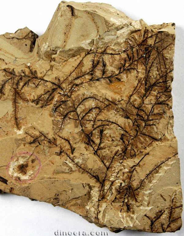 + S. venieri. Селагинеллитес Веньера. «Исследователь ископаемых Umberto Venier». Средний триас (Anisian (Pelsonian)), Северная Италия. Низкорослый плаун с