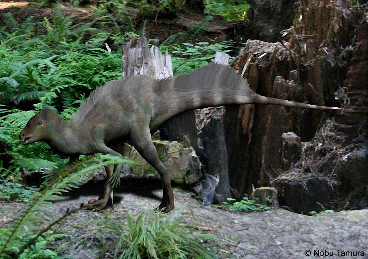 C: Покрытый пухом, как в большинстве интерпретаций. Маловероятно, так как пух (короткие волокна, как у Sinosauropteryx prima) никогда не находили у орнитисхий, и даже волокна отмеченые у теропод и орнитисхий могут быть аналогичными структурами.